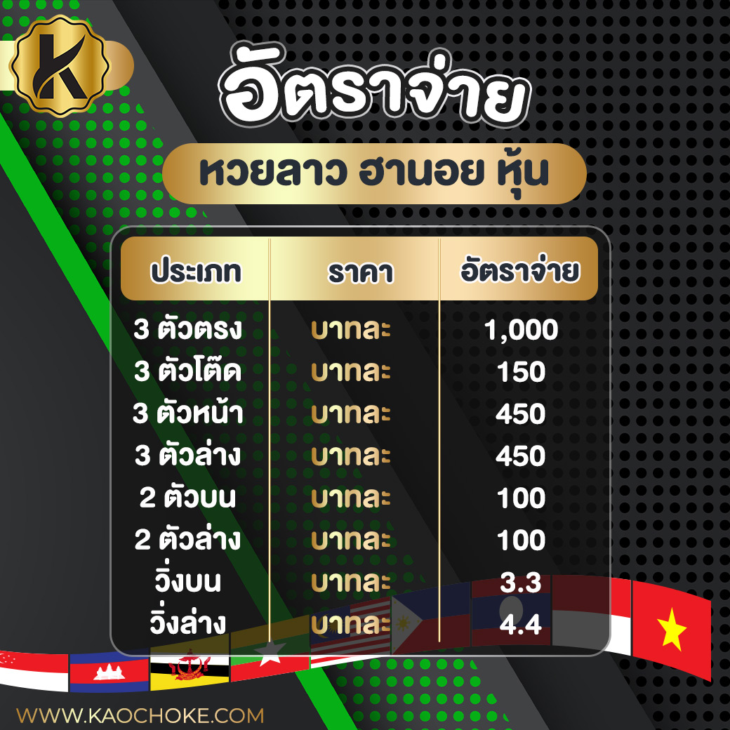 ยินดีต้อนรับสู่หวยออนไลน์ เพื่อให้ท่านทราบถึงสิทธิประโยชน์ของสมาชิกกรุณาอ่านข้อตกลงอย่างละเอียดก่อนที่จะลงทะเบียนสมัครเป็นสมาชิกและใช้บริการ KAOCHOKE.COM เมื่อสมัครสมาชิกแล้วทางเว็บจะถือว่า สมาชิกได้อ่านและยอมรับ " นโยบายและเงื่อนไขการให้บริการของเว็บไซต์"